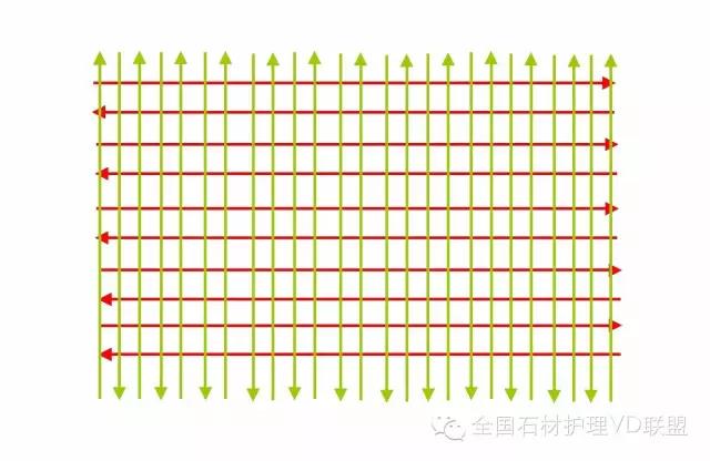 下图可简单的解释:每个箭头都代表研磨机前后移动3次,工人推着机器,沿着“前→后→前”的顺序,移动3次即可。